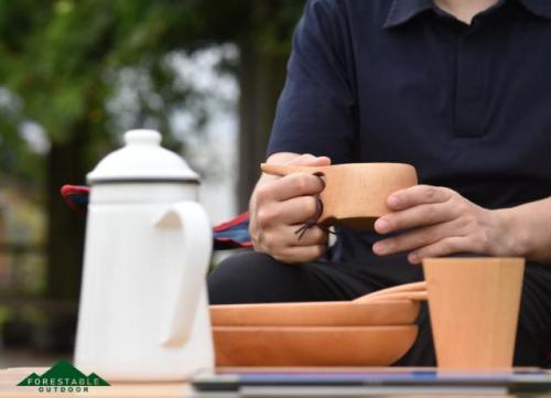 籐芸さんのククサカップはブナを使用して作られていて、頑丈で持ち運びやすいためキャンプやバーベキューなどのアウトドアに向いています。