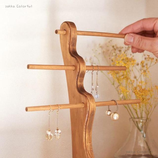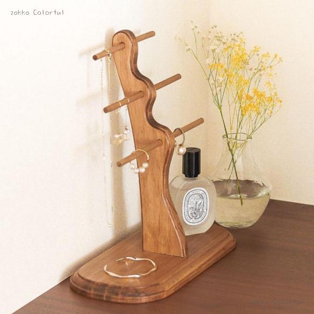 やさしい天然木の温もりと、ゆるやかなウェーブが映えるアクセサリースタンド。