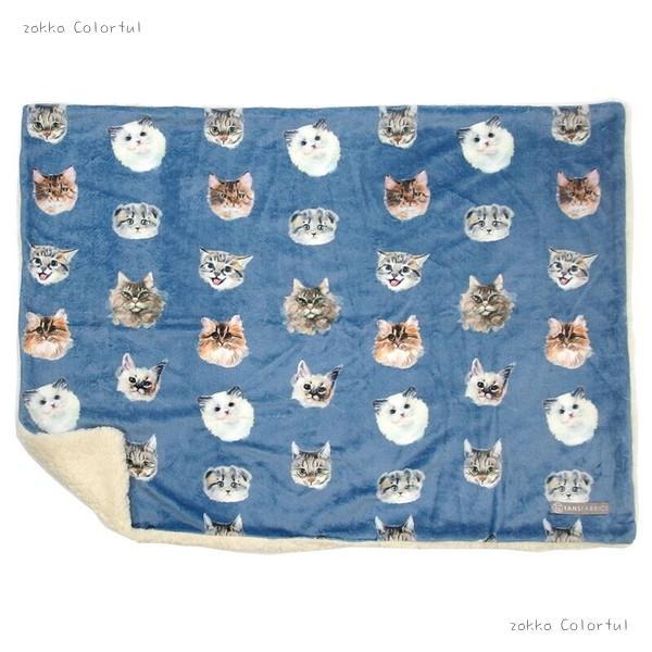 商品名: フランネルボアブランケット CAT FACE ネイビーブルー
