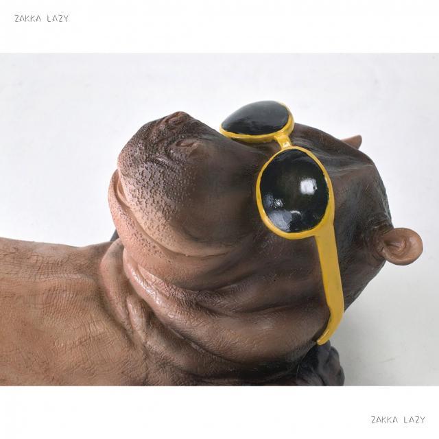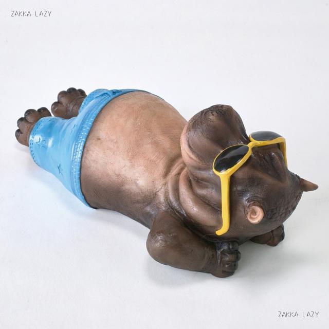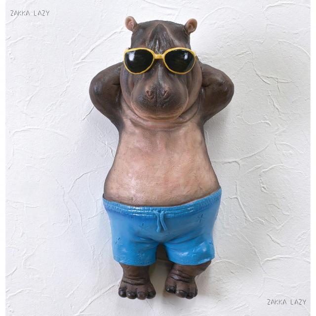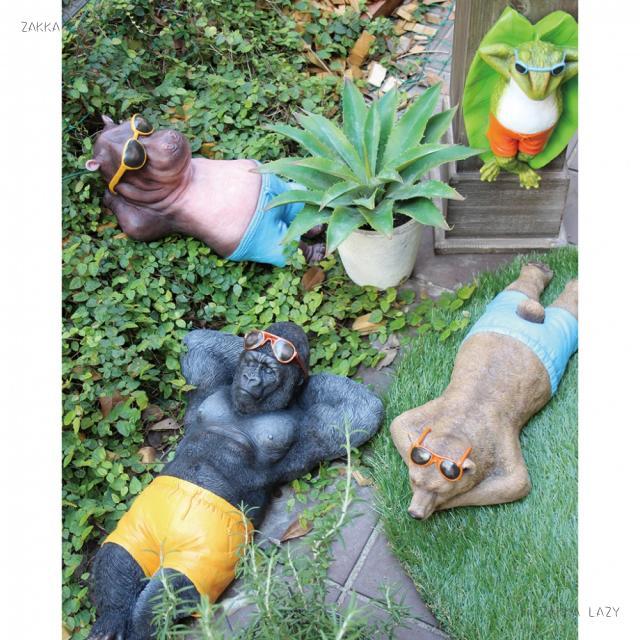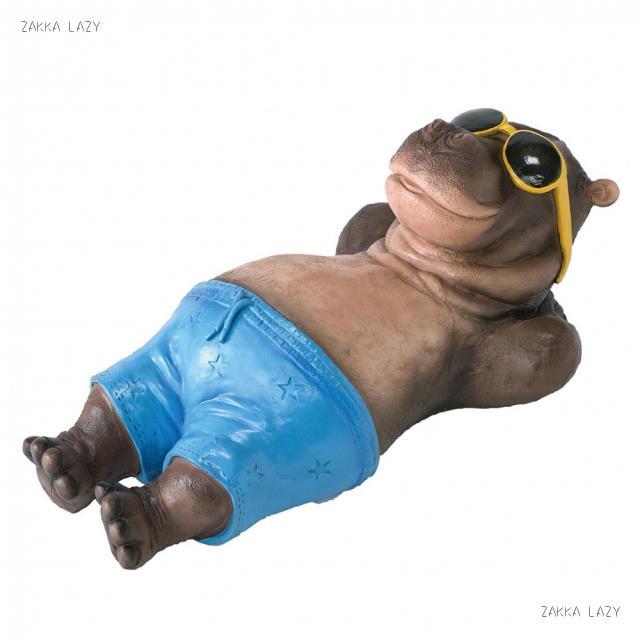 水着とサングラスでごろんとする様が、なんともかわいい!動物の世界でのバカンスを想像して、楽しくなるオブジェです。壁掛けにも出来るので、ガーデンのマスコットにしたり、お部屋で一緒にバカンス気分になっても面白い。