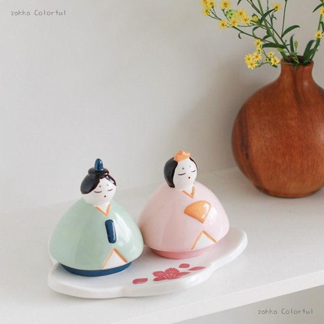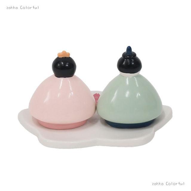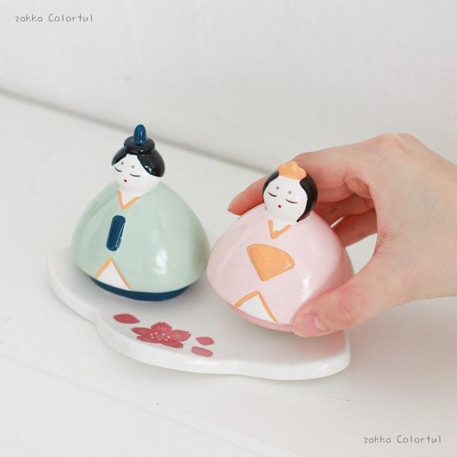 ころんとしたフォルムが愛らしい、手のひらサイズの磁器製ひな祭りオブジェ。