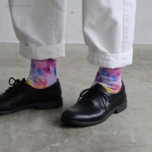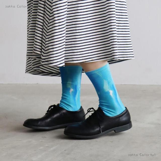 【2足組】青のねむり 色のめざめプリントクルーソックス2P【レディース】