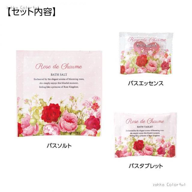 ローズが花咲くおうちの中には、ローズの香りの入浴料が3個入っています。