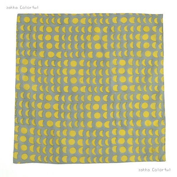 305107GY 星の刺繍をほどこしたブロックプリントハンカチ GY