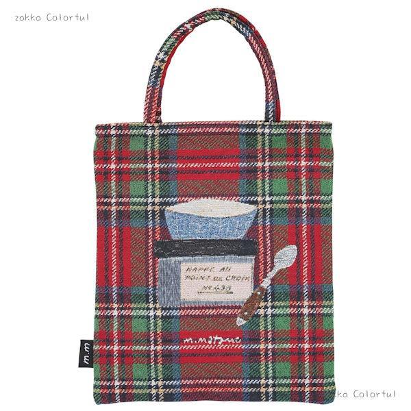 松尾ミユキさんが描くネコや日用品のモチーフを、ゴブラン織りのあたたかな布に落とし込んだ、小さなトートバッグです。