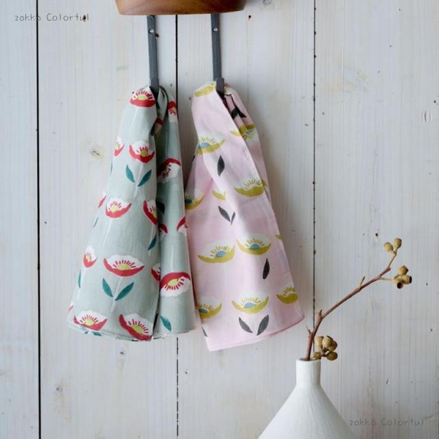 商品名: アネモネ柄のブロックプリントハンカチ GY