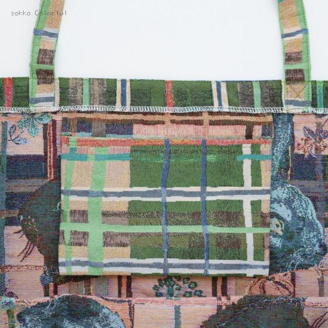その不思議な世界を、重厚感あるゴブラン織りで仕立てたマーケットバッグです。