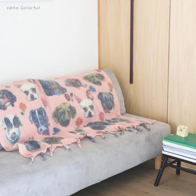 ナタリー・レテさんの描く、愛らしい動物たちの顔がふんわりとデザインされたシャギーブランケット。