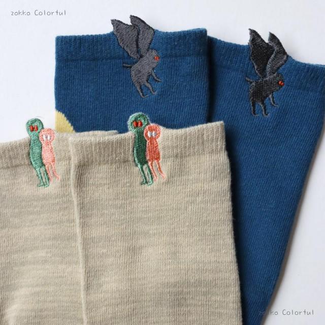 【2足組】エイリアン&モスマン刺繍 ショートソックス 2P