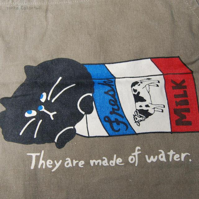 ポケット部分には牛乳パックからはみ出るネコのユニークなデザイン♪