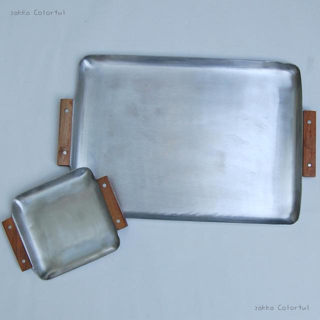 ノスタルジックな木の持ち手のアルミトレー(S)