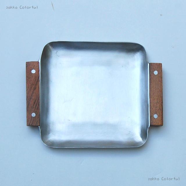 ノスタルジックな木の持ち手のアルミ ミニトレー