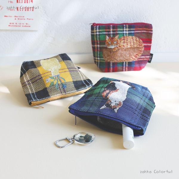 松尾ミユキさんのやさしいタッチで描かれたネコたちが、繊細なゴブラン織りで丁寧に表現されたポーチです。