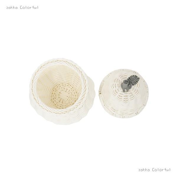 丸みのあるフォルムが印象的な、フルーツモチーフのフタ付き収納バスケットです。
