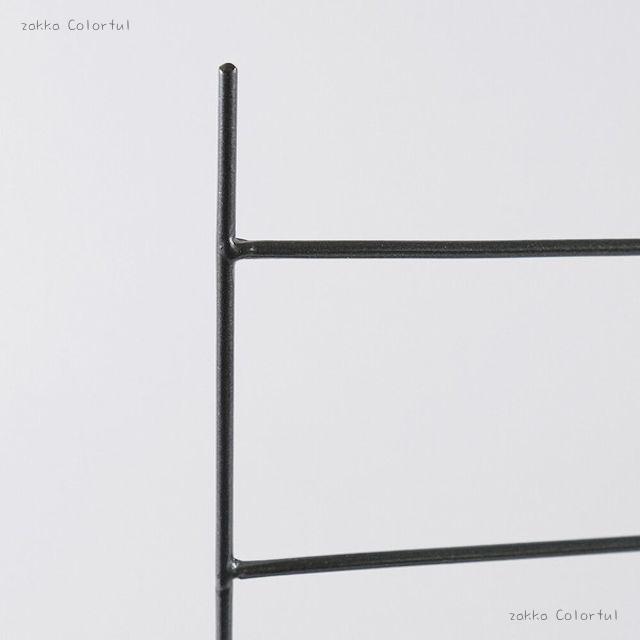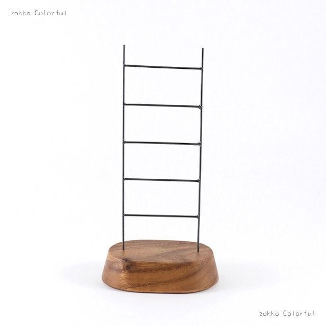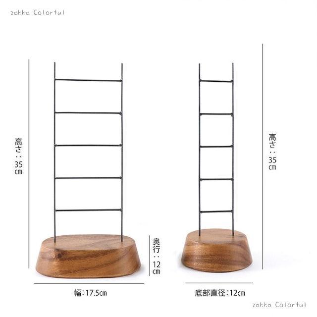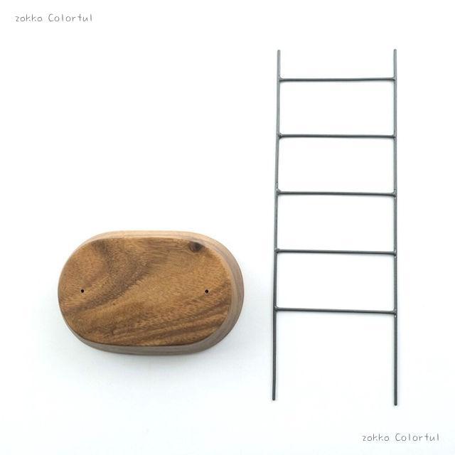 小さなアイアンラダー(はしご)とアカシアプレートを組み合わせたアクセサリースタンド。