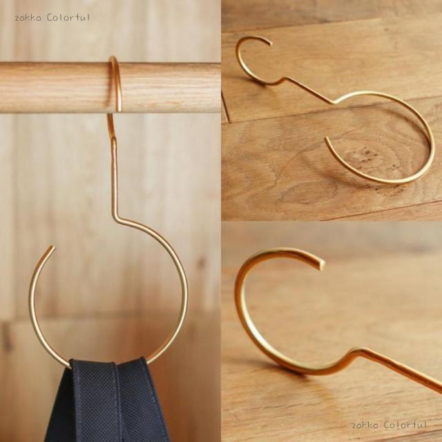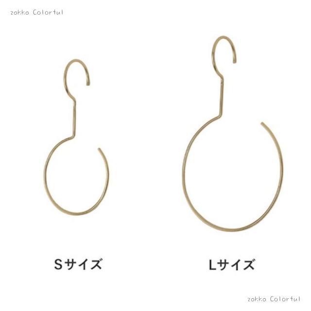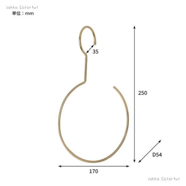 繊細な円形フォルムと、落ち着いたゴールドカラーが印象的なスチール製のフックハンガー。