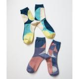 【2足組】青のねむり 色のめざめプリントクルーソックス2P【レディース】