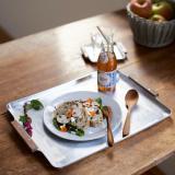 ノスタルジックな木の持ち手のアルミトレー(L)